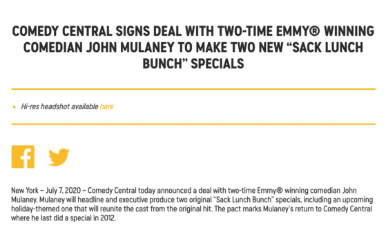 So, announced today, Comedy Central took that cue (and, we’re guessing, a passed up opportunity by Netflix) to do two more Sack Lunch Bunch specials with Mulaney, one of which will be positioned for the holidays.
